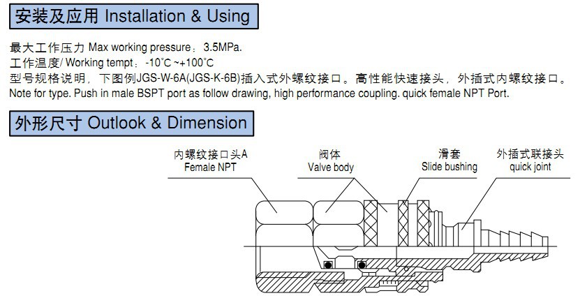 高性能快速接頭 JGS系列,可非標(biāo)來樣定做