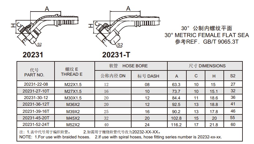 20231 30°公制內(nèi)螺紋平面 扣壓式軟管接頭