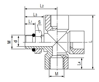 ②:組合式三通終端變徑管接頭 公稱通徑 Ø6MM B=Ø8MM C=Ø4MM JZH-3T-Z6-8-4 M10×1/M12×1.25/M8×1