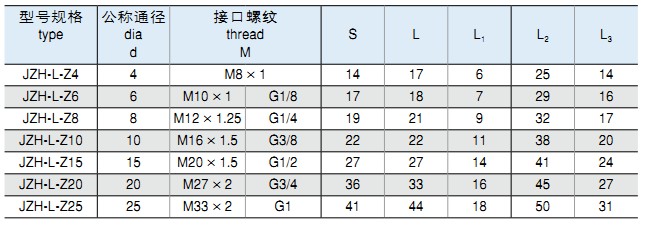 JZH系列氣動管接頭,是一種新型的組合式氣動管接頭,最大工作壓力為1.0MPa.這種管接頭是由各種不同的接頭、接頭體和一個終端管座組合而成的。通過這三部分的組合,可以把同個管接頭組合成具有各種不同連接方式和不同公稱通徑的組合式管接頭。