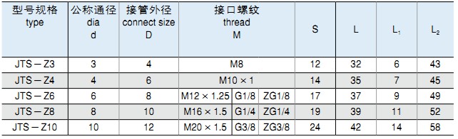 • 標記示例:調(diào)速管接頭 公稱通徑 Ø6MM JST-Z6 M10×1