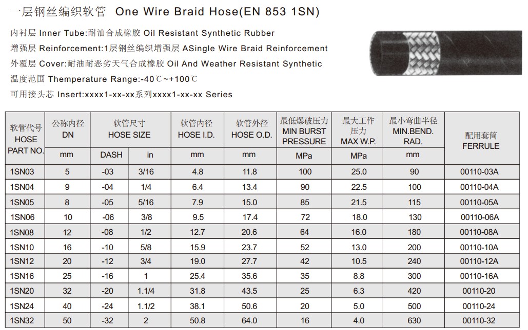 關(guān)鍵詞:EN 853 1SN 一層鋼絲編織軟管