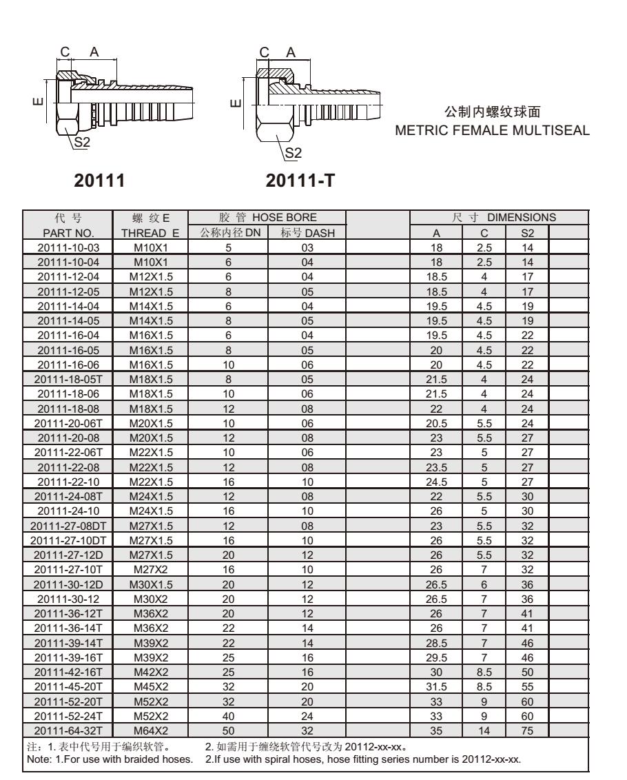20111 公制內(nèi)螺紋球面 扣壓式軟管接頭