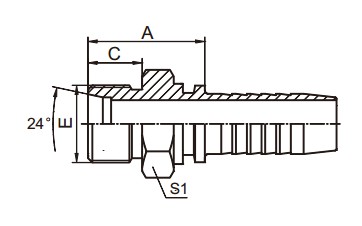 10511 公制外螺紋24°內(nèi)錐面重系列 扣壓式軟管接頭