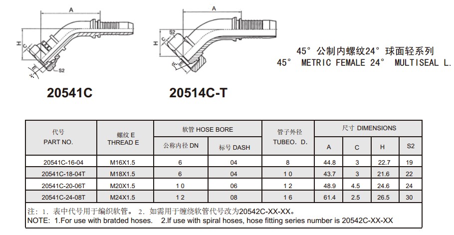 20541C 45°公制內(nèi)螺紋24°球面輕系列