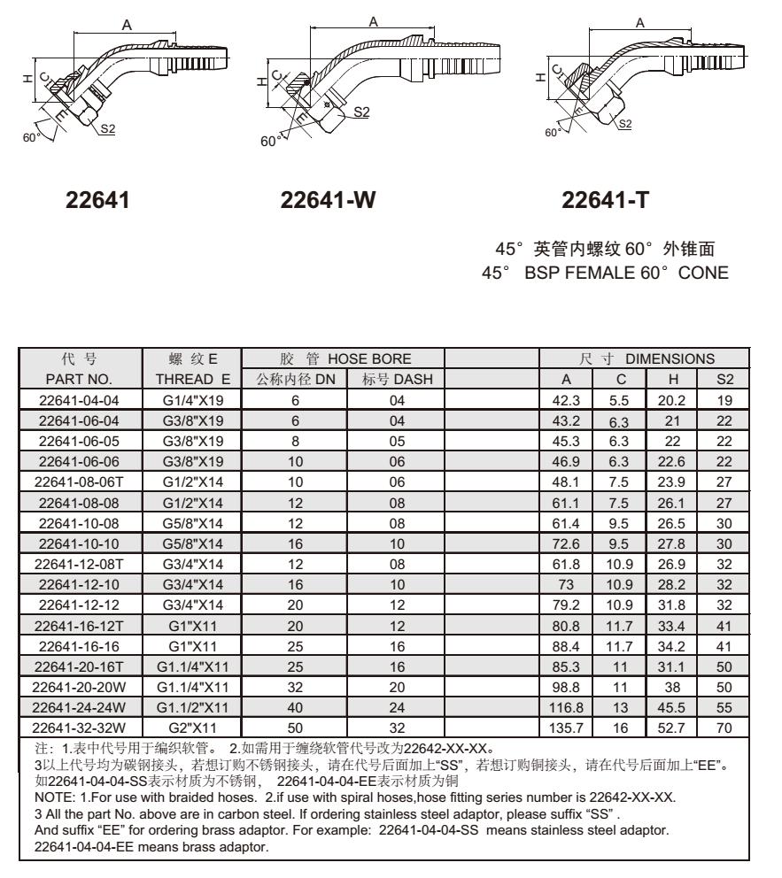 22641 45°英管內(nèi)螺紋60°外錐面