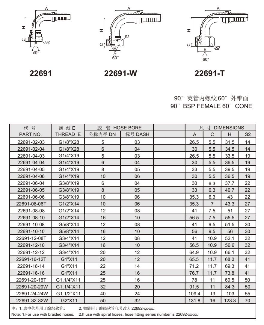 22691 90°英管內(nèi)螺紋60°外錐面