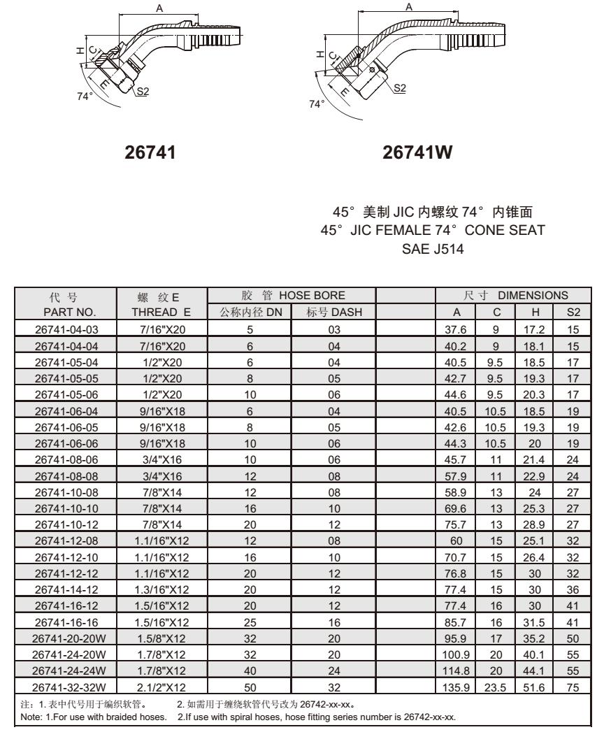 26741 45°美制JIC內(nèi)螺紋74°內(nèi)錐面