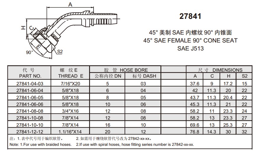 27841 45°美制SAE內(nèi)螺紋90°內(nèi)錐面