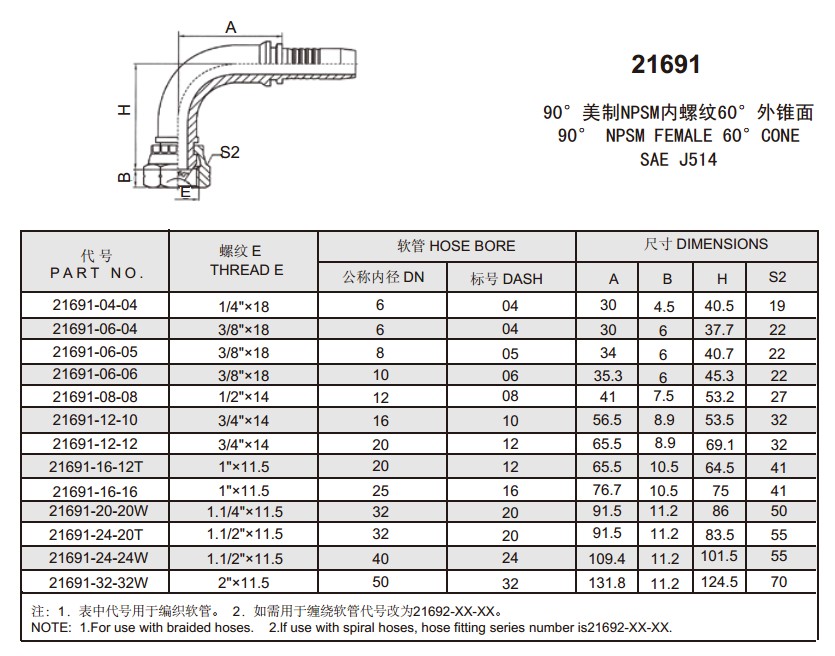 21691 90°美制NPSM內(nèi)螺紋60°外錐面