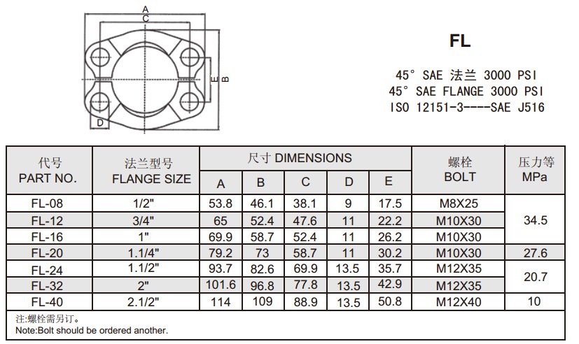FL 45°SAE 法蘭 3000 PSI