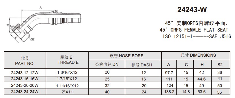 24243-W 45°美制ORFS內(nèi)螺紋平面