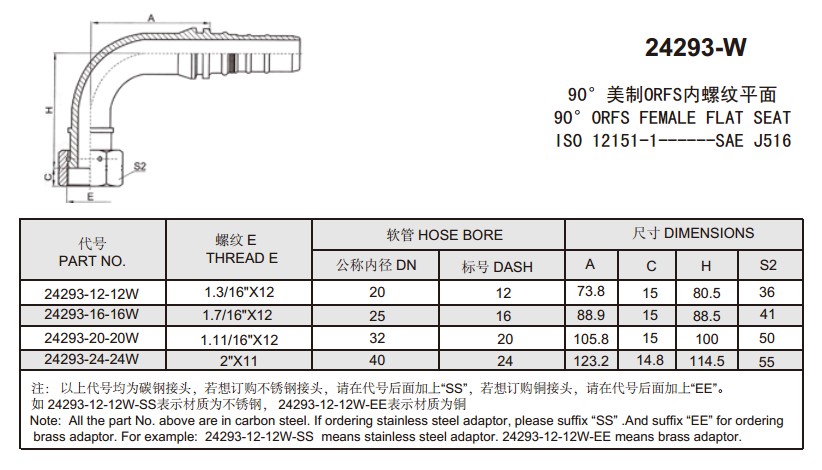 24293-W 90°美制ORFS內(nèi)螺紋平面
