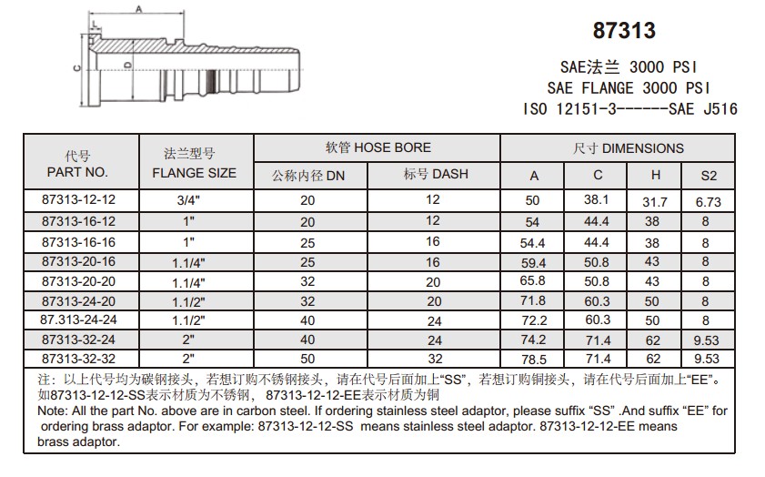87313 SAE法蘭 3000 PSI