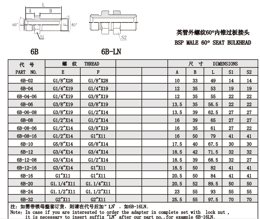 6B 6B-LN 英管外螺紋60°內(nèi)錐過板接頭