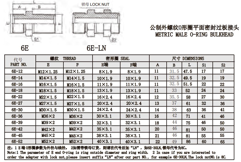 6E 6E-LN 公制外螺紋O形圈平面密封過板接頭