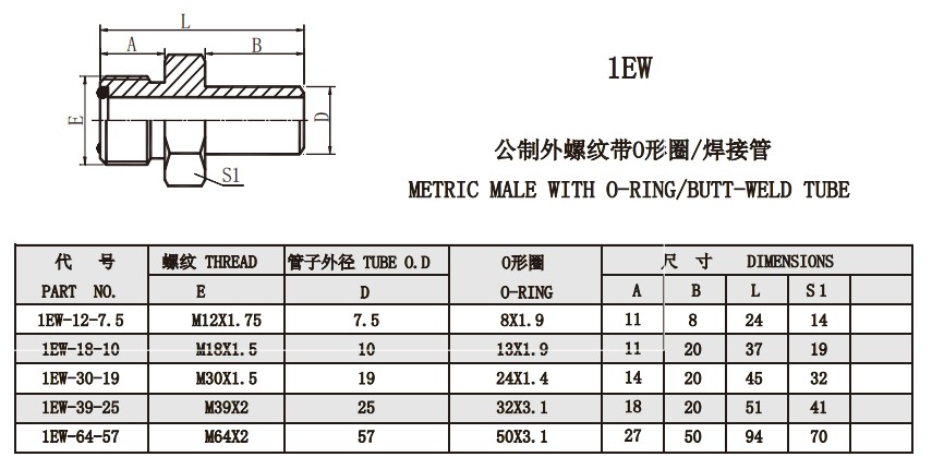 1EW 公制外螺紋帶O形圈/焊接管