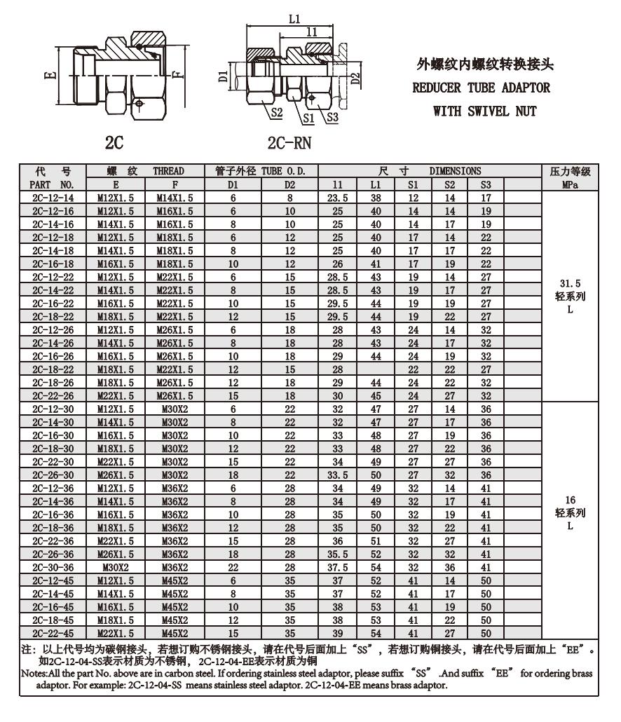 2C 2C-RN 外螺紋內(nèi)螺紋轉(zhuǎn)換接頭