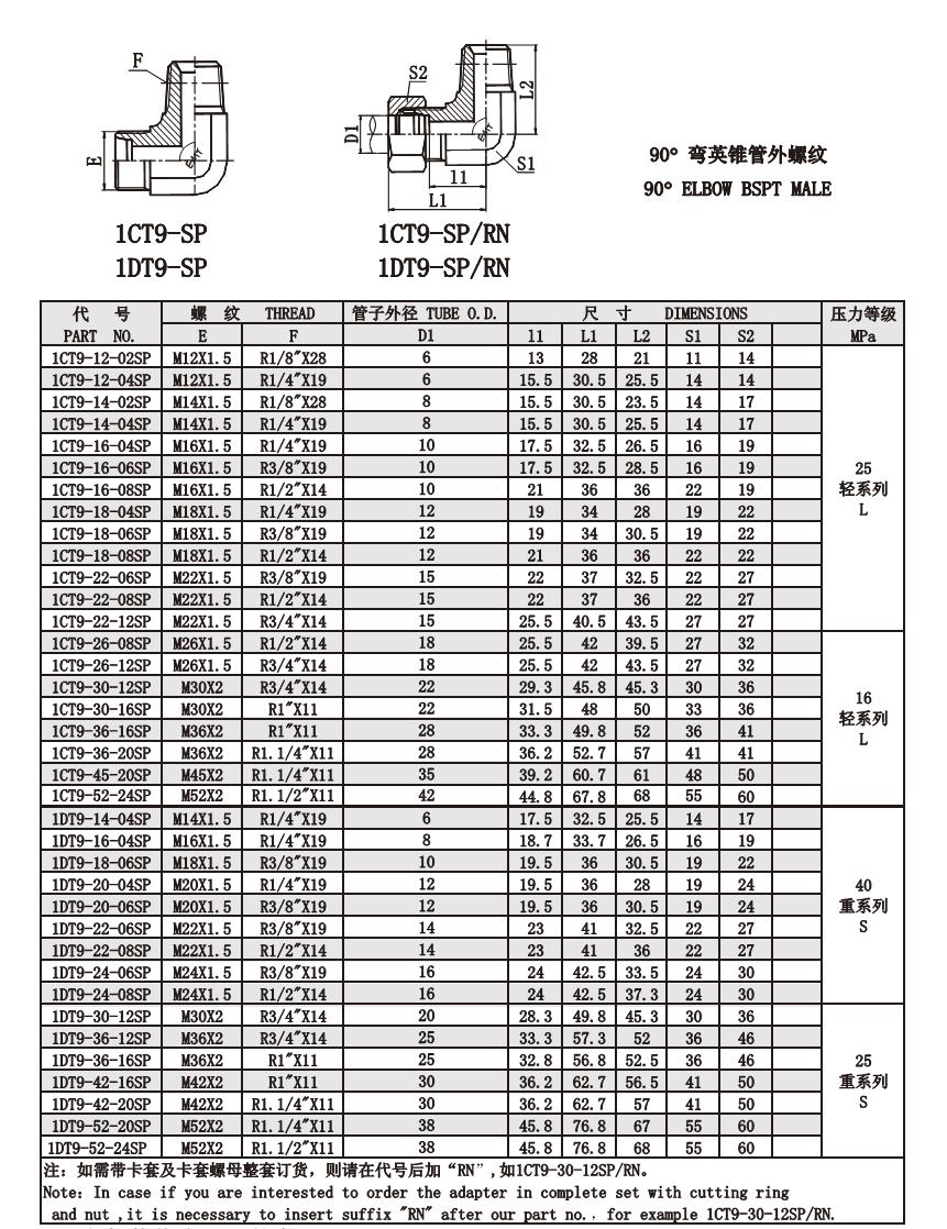 1CT9-SP 1CT9-SP/RN 90°彎英錐管外螺紋