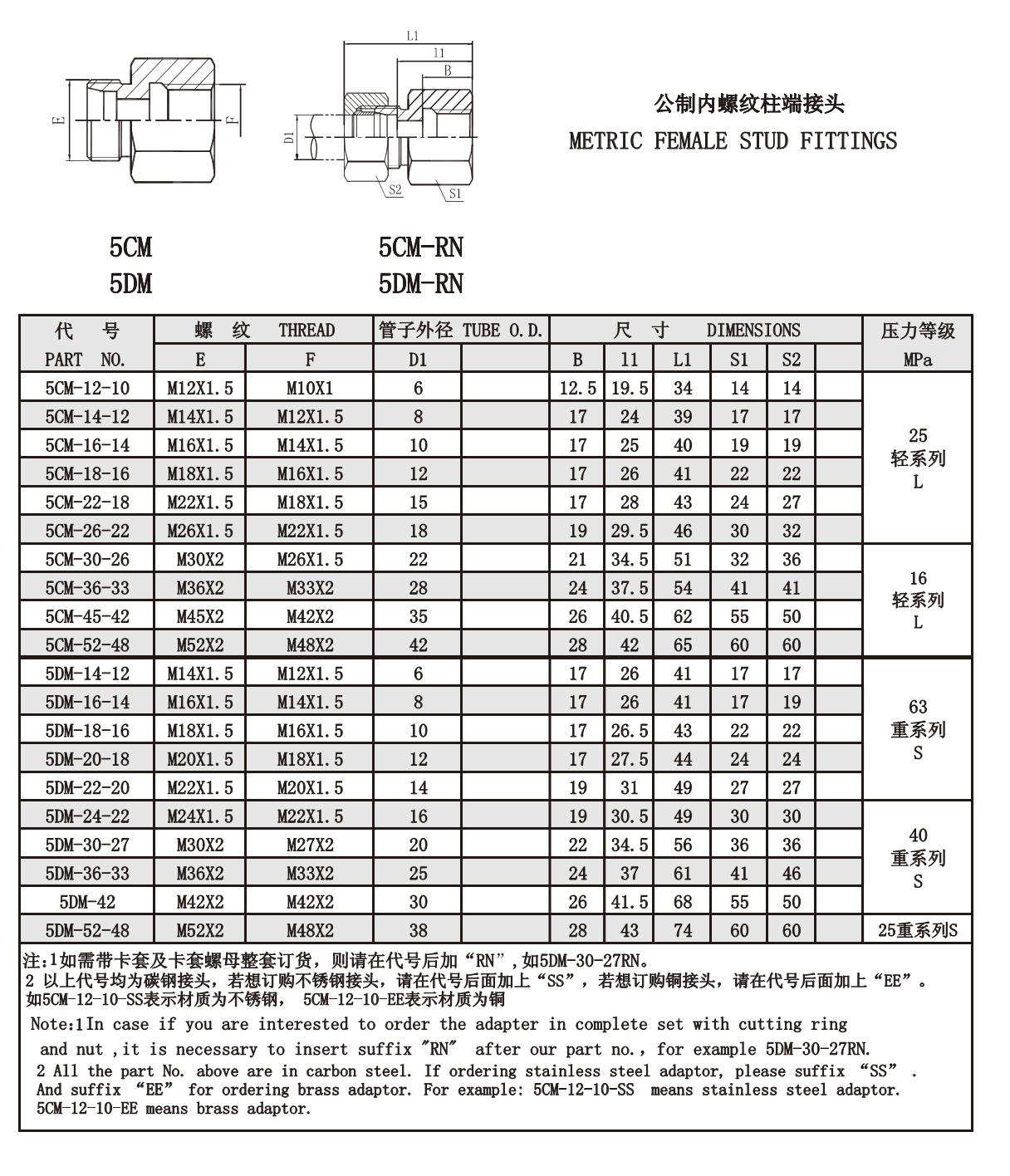 5CM 5DM 公制內(nèi)螺紋柱端接頭
