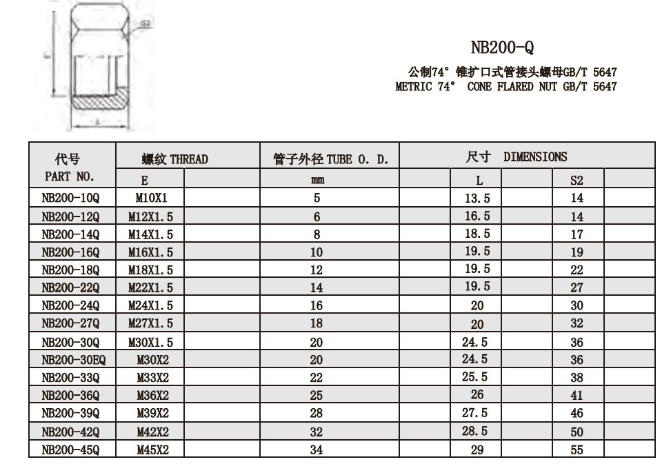 NB200-Q 公制74°錐擴(kuò)口式管接頭螺母GB/T 5647