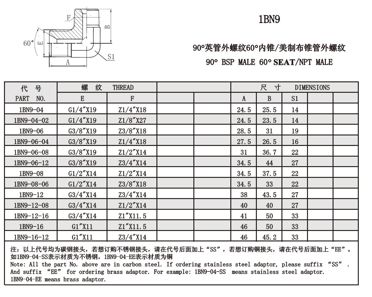 1BN9 90°英管外螺紋60°內(nèi)錐/美制布錐管外螺紋