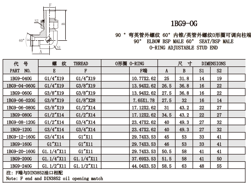 1BG9-OG 90 °彎英管外螺紋 60°內(nèi)錐/英管外螺紋O形圈可調(diào)向柱端