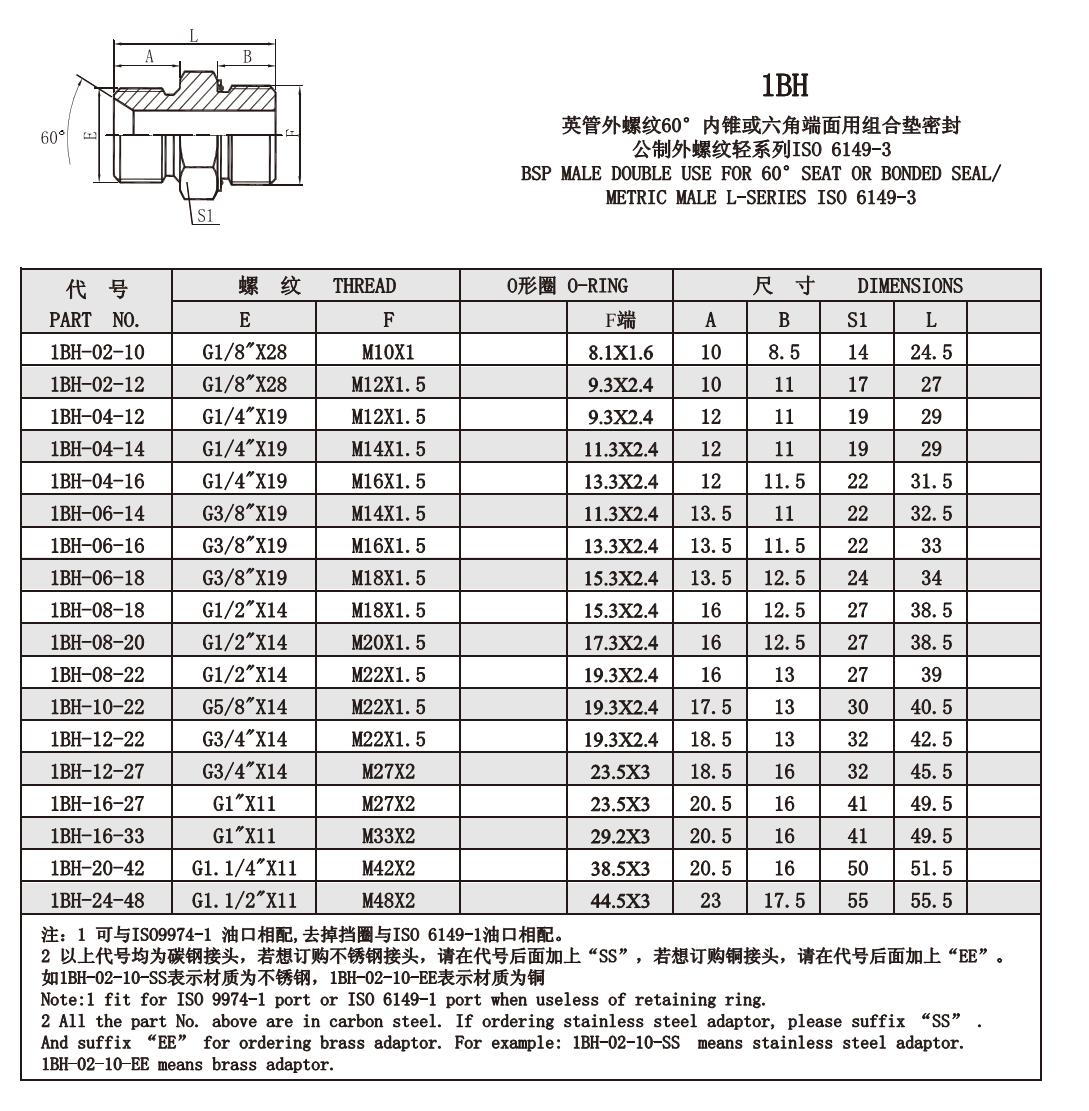 1BH 英管外螺紋60°內(nèi)錐或六角端面用組合墊密封 公制外螺紋輕系列ISO 6149-3