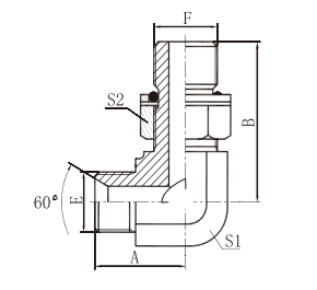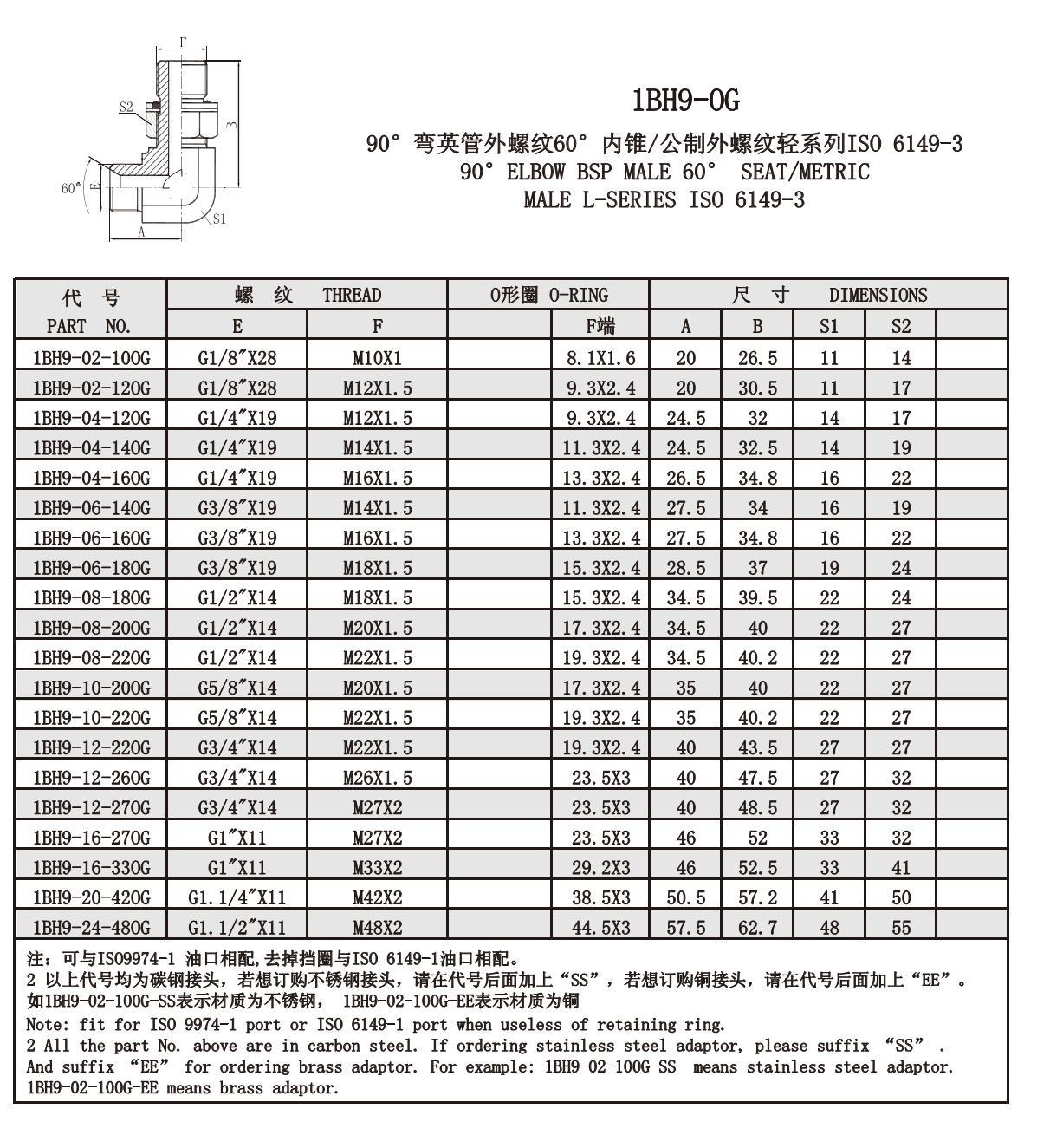 1BH9-OG 90°彎英管外螺紋60°內(nèi)錐/公制外螺紋輕系列ISO 6149-3