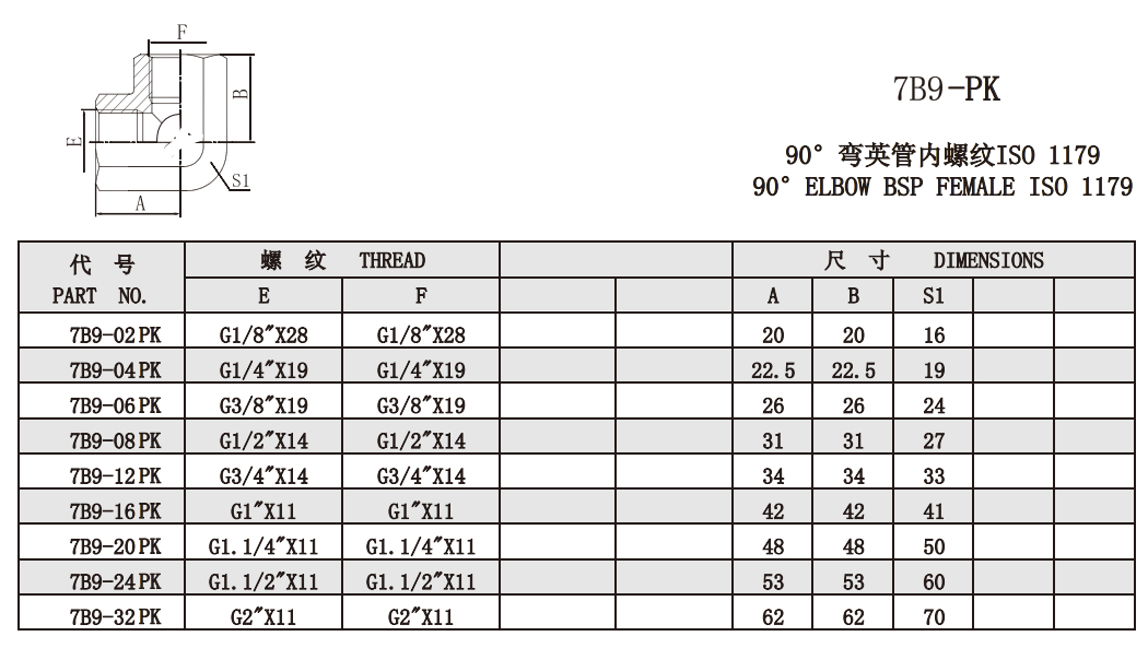 7B9-PK 90°彎英管內(nèi)螺紋ISO 1179