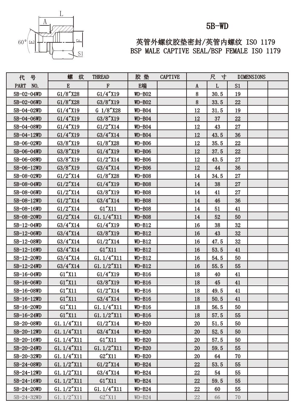 5B-WD 英管外螺紋膠墊密封/英管內(nèi)螺紋 ISO 1179