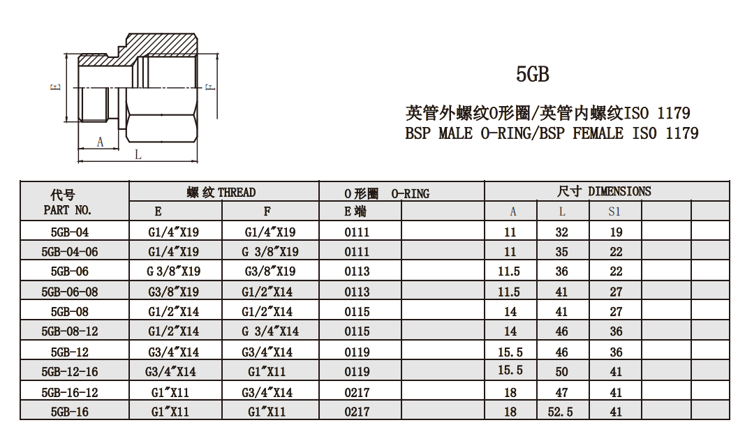 5GB 英管外螺紋O形圈/英管內(nèi)螺紋ISO 1179