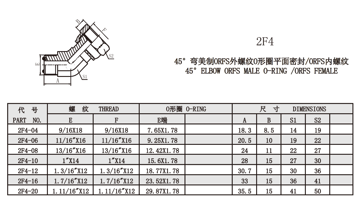 2F4 45°彎美制ORFS外螺紋O形圈平面密封/ORFS內(nèi)螺紋
