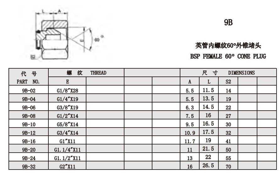 9B 英管內(nèi)螺紋60°外錐堵頭