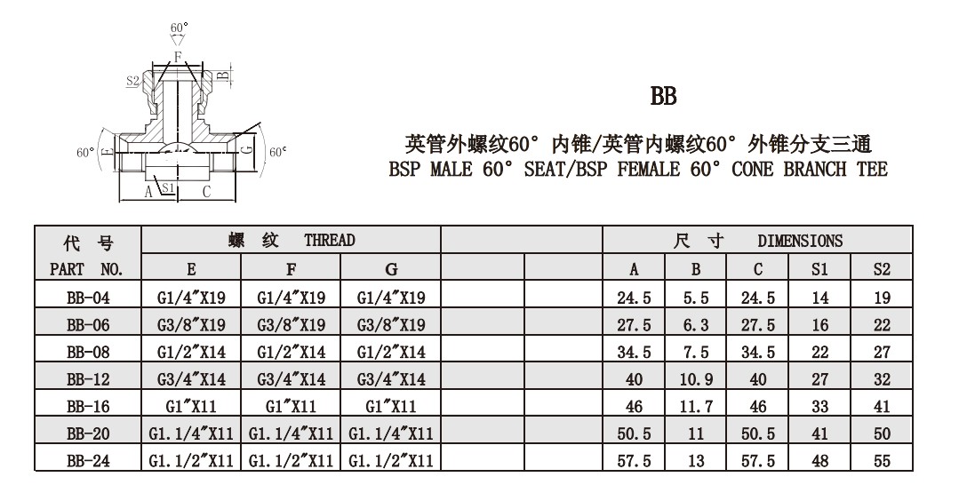 BB 英管外螺紋60°內(nèi)錐/英管內(nèi)螺紋60°外錐分支三通