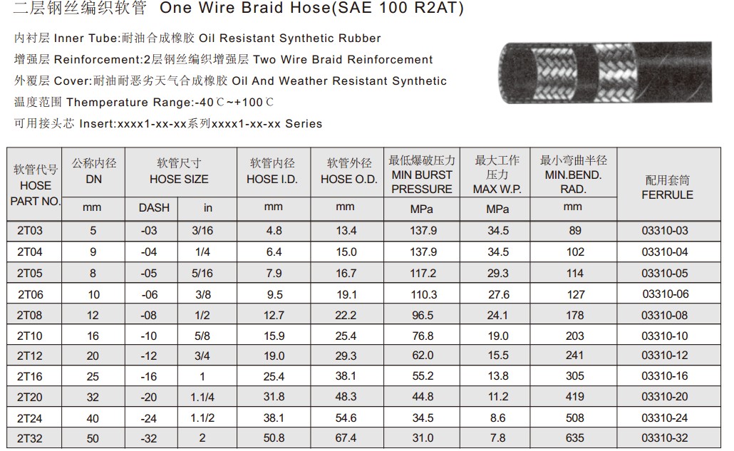 SAE 100 R2AT 二層鋼絲編織軟管