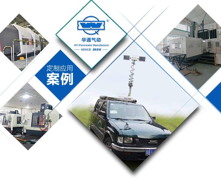 本公司生產的升降氣缸應用于車載機動照明機動、方便、實用,廣泛應用于公安、交通、勘察、野外照明、通訊等領域。