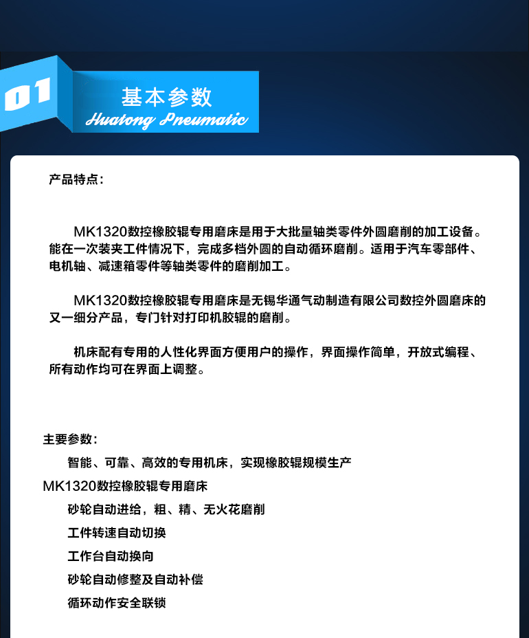 MK1320數(shù)控橡膠輥專用磨床,膠輥磨床,膠輥研磨機是用于大批量軸類零件外圓磨削的加工設備。能在一次裝夾工件情況下,完成多檔外圓的自動循環(huán)磨削。適用于汽車零部件、電機軸、減速箱零件等軸類零件的磨削加工。