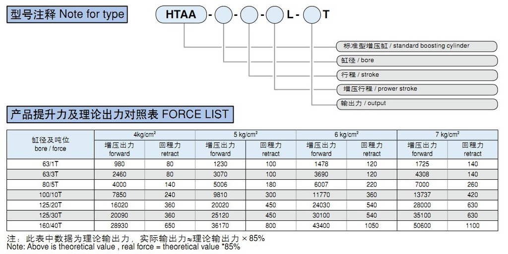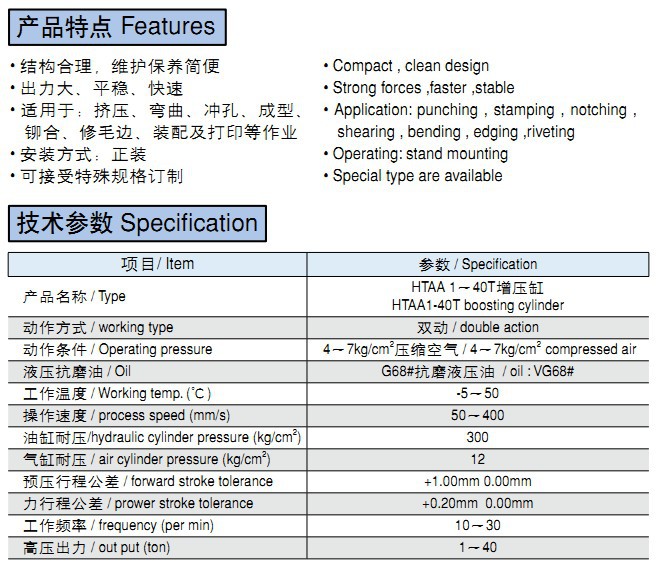 技術參數(shù) Specification項目/ Item 參數(shù) / Specification產(chǎn)品名稱 / TypeHTAA 1~40T增壓缸HTAA1-40T boosting cylinder動作方式 /&nb