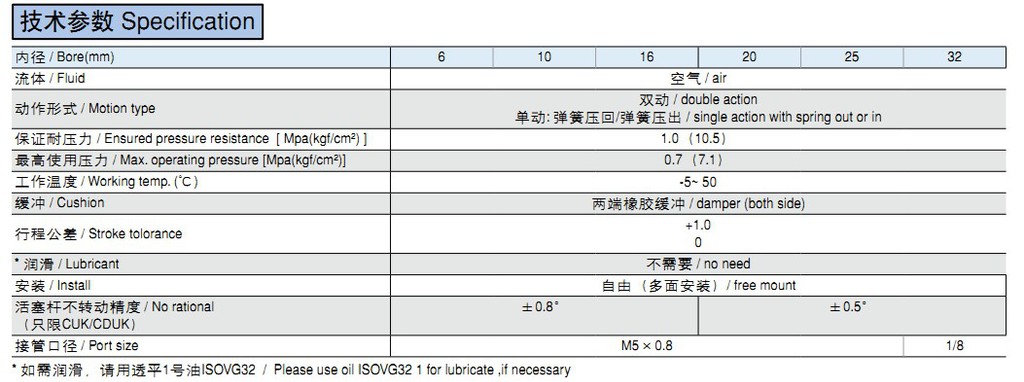 內(nèi)徑 / Bore(mm) 6 10 16 20 25 32