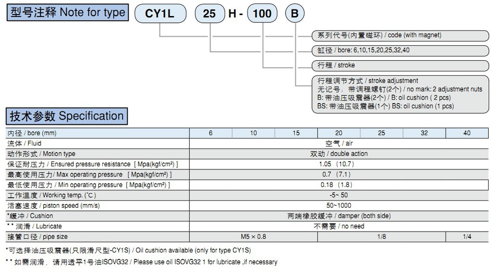 *可選擇油壓吸震器(只限滑尺型-CY1S) / Oil cushion available (only for type CY1S)