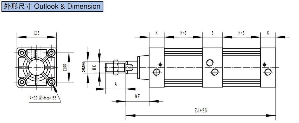 double action cylinder. The pull  force  is  two  times  than QGW cylinder and push