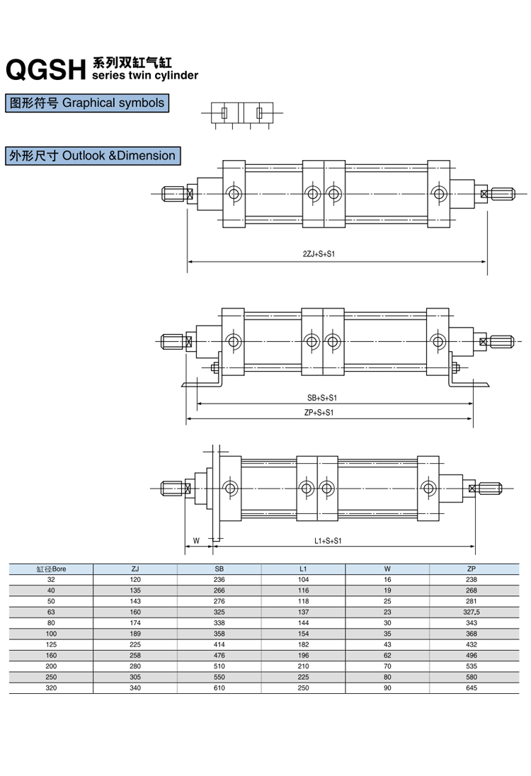 QGSH系列 雙缸氣缸特點:QGS系列氣缸在結(jié)構(gòu)要素尺寸、安裝形式和尺寸方面都符合ISO國際標準,具有工作可靠、耐久性好、互換性強的特點??蓙韴D加工,可按技術(shù)參數(shù)選型非標定制