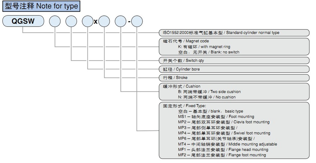 QGSW系列氣缸是歐洲型輕型氣缸,結(jié)構(gòu)緊湊,安裝形式和
