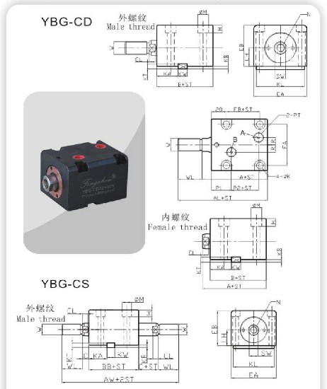 YBG-CD/CS油壓側(cè)向單軸/雙軸配管式薄型缸