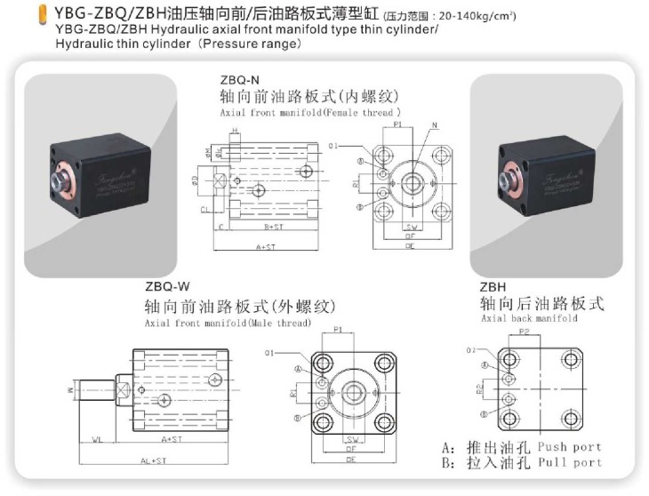 YBG-ZBQ/ZBH油壓軸向前/向后油路板式薄型缸