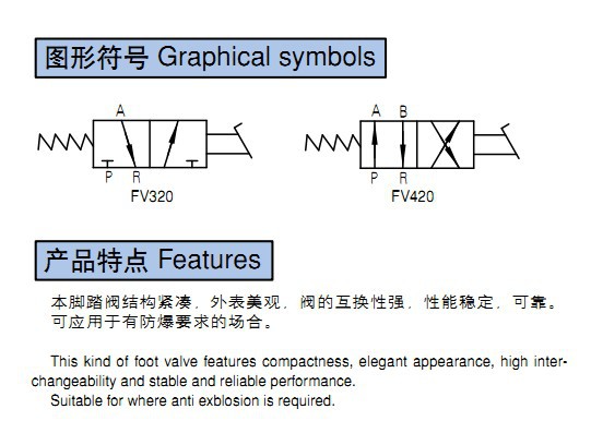 華通氣動(dòng) 腳踏閥 FV系列 可應(yīng)用于有防爆要求的場(chǎng)合,可提供定制