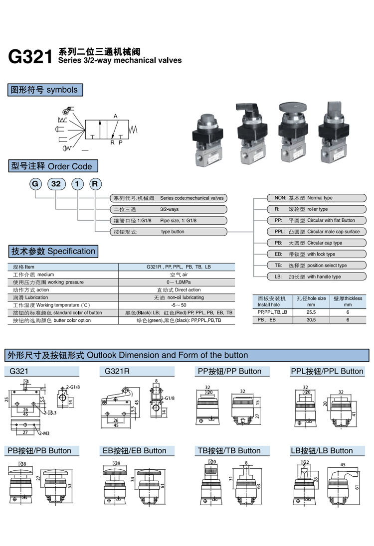 華通氣動(dòng) 機(jī)械閥G321系列 二位三通,可提供定制