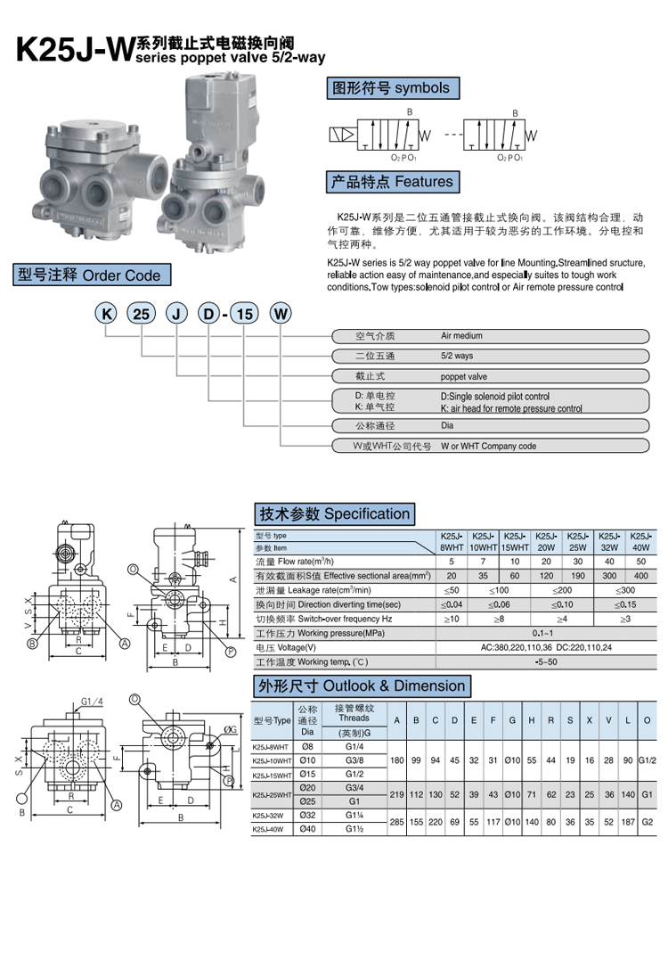 管接截止式換向電磁閥K25JD-WF系列二位五通,可提供定制方頭無(wú)錫閥單聯(lián)閥