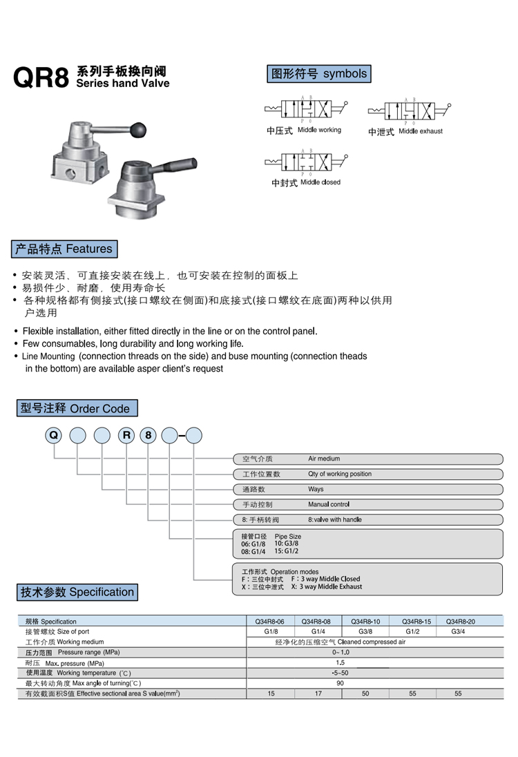 華通氣動(dòng) 手動(dòng)轉(zhuǎn)閥 QR8系列 支持低接式與側(cè)接式,可提供定制